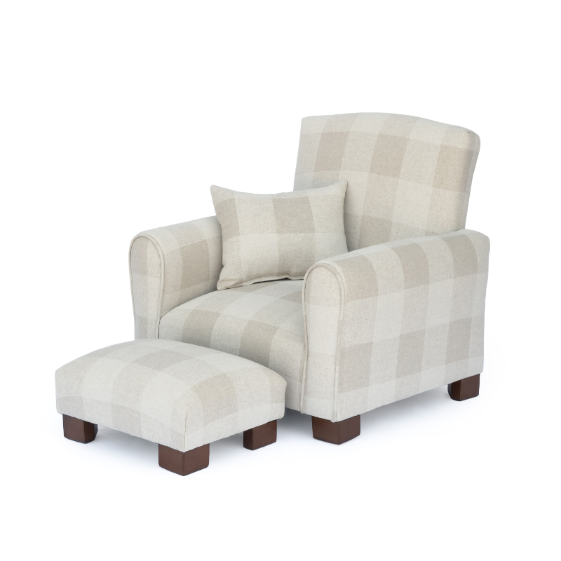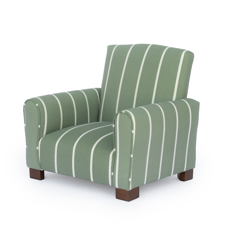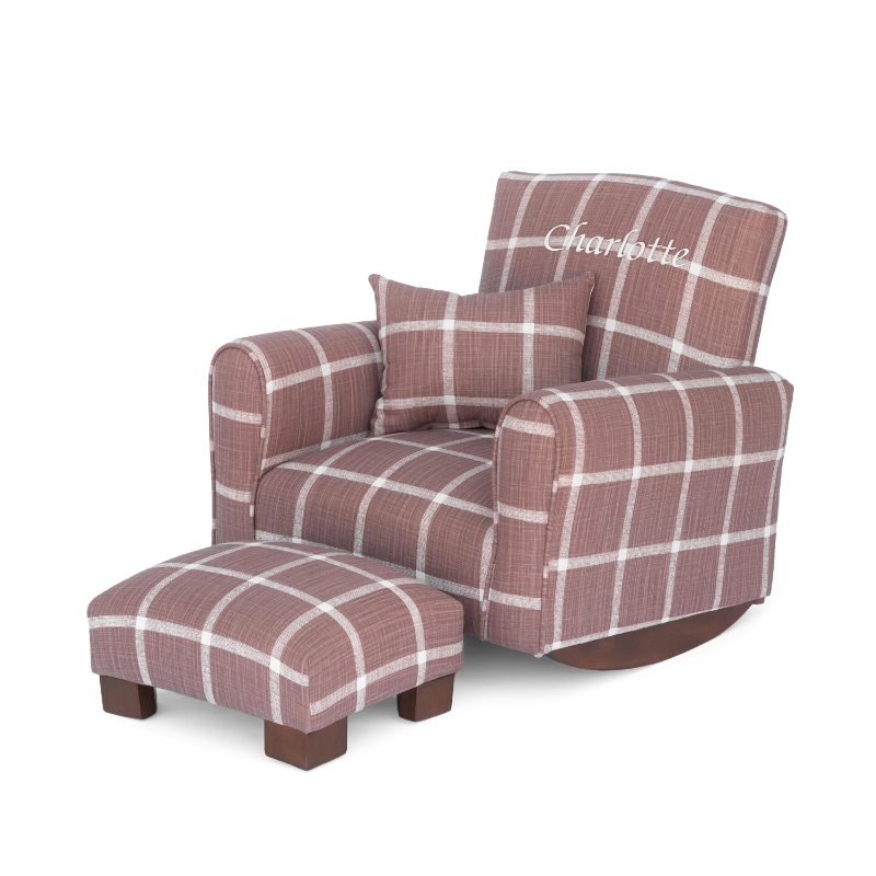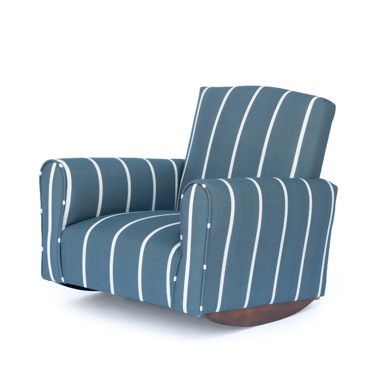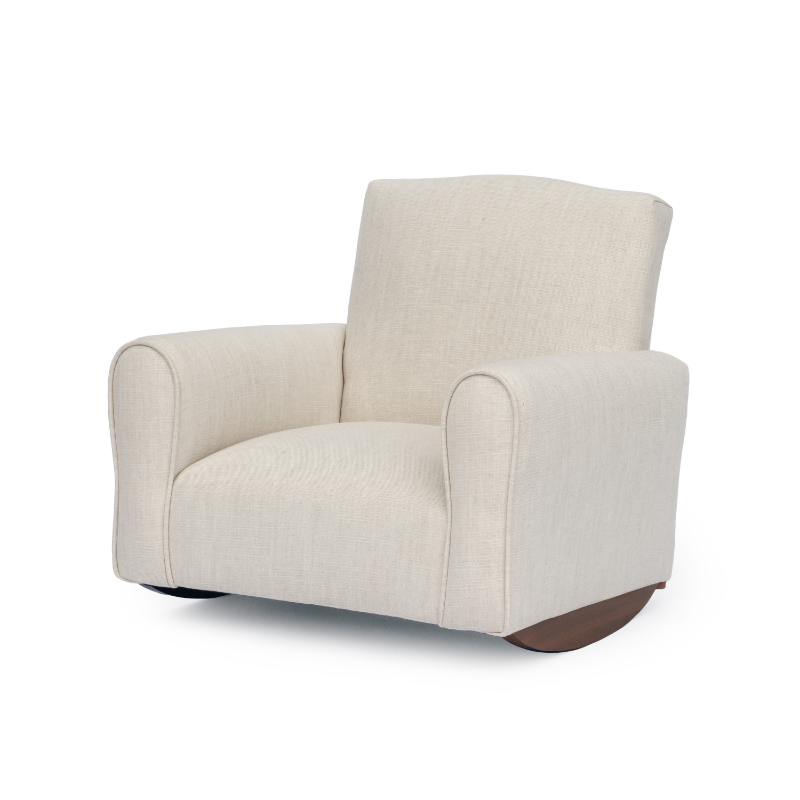Each handcrafted chair, rocker, or sofa can be personalized with your child’s name, fabric, and color choice, adding a timeless and heartfelt touch to any nursery or playroom.